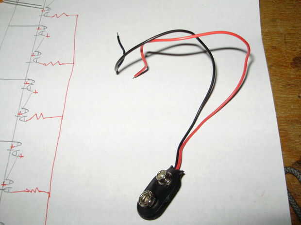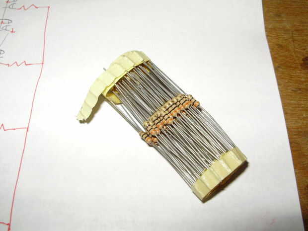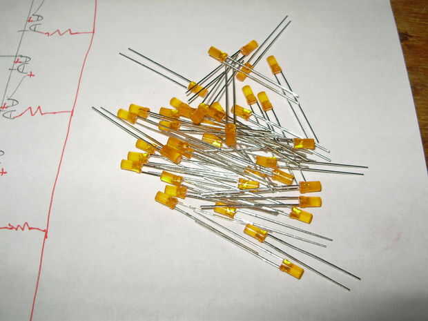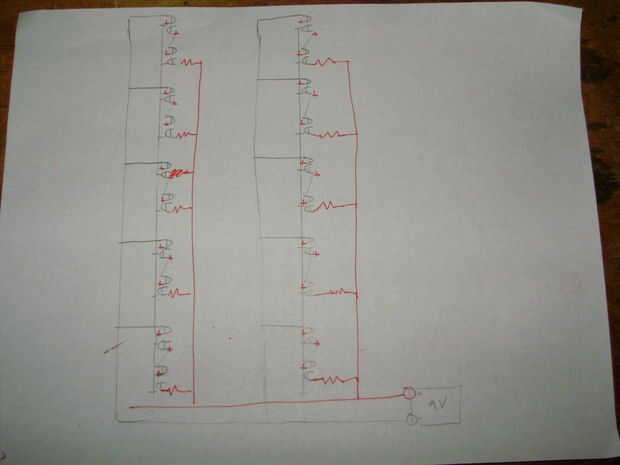 Las luces hablaron se basa en un circuito muy simple. Cada uno se compone de diez conjuntos de cuatro LED y un resistor en una serie, en paralelo. Opté por usar 3mm LED naranja de porque eran para Halloween.