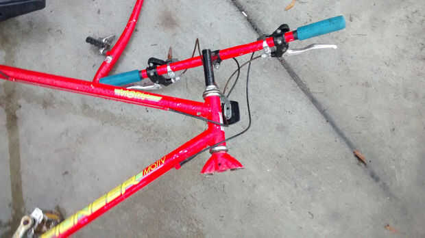 La rueda de 20" encontré ya había sido separada del resto de la estructura, pero si todavía tienes la moto entera tendrá que cortar justo detrás del auricular dirección para retirar el tubo superior y abajo el tubo. El mecanismo de giro debe seguir trabajando.