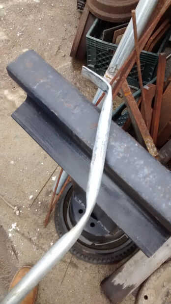 Tome una longitud de EMT y curva en forma de 'V' poco profunda para salvar la distancia entre el armazón del carro de compras y la parte posterior de la cabeza delantera del tubo [ver imagen]. Para hacer esto, un tornillo de banco grande es muy útil para ambos el aplanar de la EMT donde se conectará a la moto y como un refuerzo para flexión contra. Hacer el soporte de la EMT, utilice los pasos siguientes, comprobando las dimensiones de apoyo regularmente contra la moto: