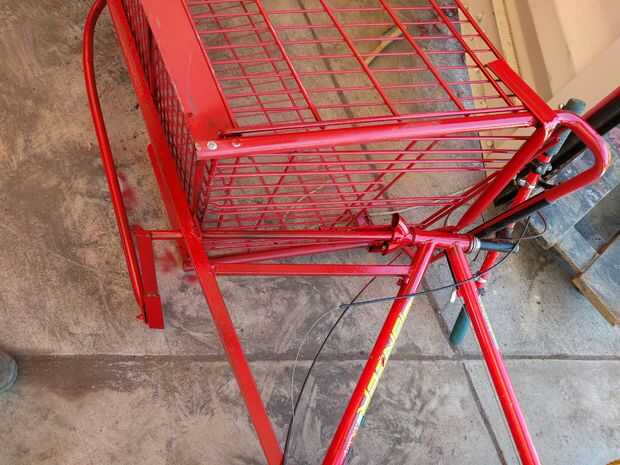 Para la capa base, pegar todo el metal oxidado con un cepillo metálico de alambre para limpiar todo el material suelto. Siga esto con unas cuantas capas de metal oxidado expuesto con "convertidor de óxido" para estabilizar la roya [ver imagen]. Aplique una capa superior que coincida con el color, en este caso un bonito color rojo brillante.