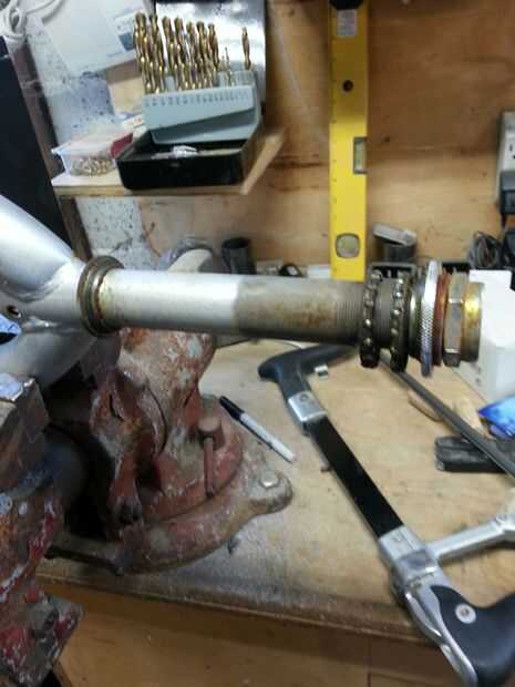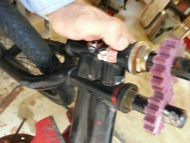 Corte la horquilla desde la parte inferior del tallo procurando para dejar el cojinete inferior en su lugar (en la horquilla extra, no que nos vamos en la moto).