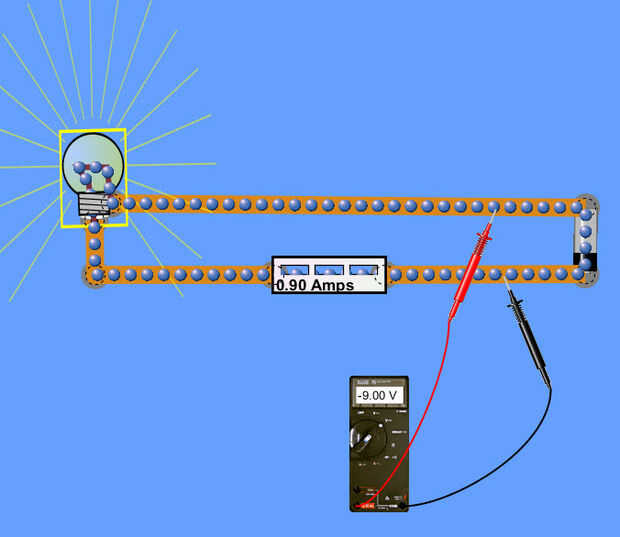 El cableado es muy simple. Desde el motor, necesita un cable va a la bombilla y otro cable volviendo de la bombilla al motor. Necesita romper uno de esos cables en algún lugar y poner uno de los multímetros en serie (en línea). Este multímetro se debe configurar para medir amperaje. El otro multímetro es poner en paralelo (a través) y está configurado para medir tensión. Ver fotos 1 y 3.