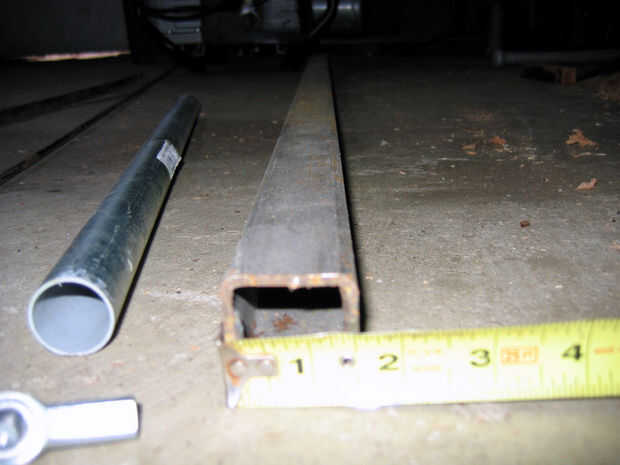 - tubería cuadrada de 1 1/2"($20) - es probable que se podría sustituir 2" - 2 1/2" tubo de escape si está más fácilmente disponible. Se necesita alrededor de 6'. Si usted compra de un proveedor de metal, busque recortar gastos. Yo pude han tenido 12' sin cortar por el precio de 6' corte.