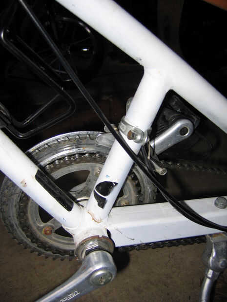 No se preocupe si usted termina con grandes agujeros en la caja del pedalier de las estancias de cadena. Sólo trate de mantener todo el metal recto para que pueda volver a enhebrar el pedalier nuevo más tarde.