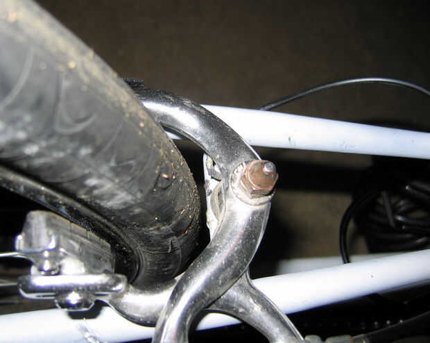 Doblar el asiento se queda abajo con la rueda trasera y frenos sigue. No doblarla hasta que rozará el soporte de freno de la rueda o que las pastillas no puede ser ajustadas para golpear el borde. Sería bueno hacer algún tipo de forma para este paso para que todo se pliega uniformemente. No hacerlo. En cambio, solía pequeños trozos de madera de 2 x 4 set donde yo quería que la curva y había retocado a mano - supongo que de una forma ad hoc. Funcionó bastante bien, pero si se mira muy real, las estancias del asiento no tienen exactamente el mismo arco. La próxima vez haría una forma de doblarlas sobre la madera contrachapada.