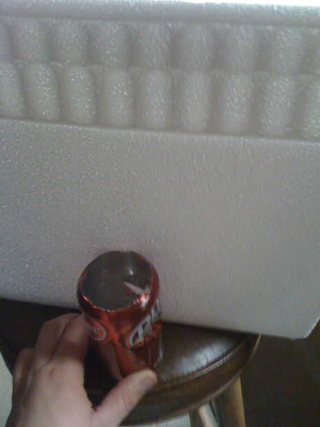 1. comparar el tamaño de la lata y hágale un agujero 3/4 la altura de la lata.