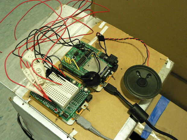 Monte de la Freeduinos en la parte posterior de la caja con los cables. Cierre la solapa superior de la caja con los cables y listo! Ahora si sólo se podía comprobar mi correo electrónico. Hmmmm...