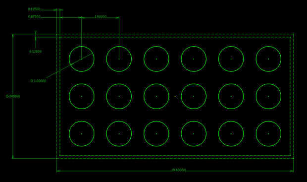 Utilice lápiz y papel o una herramienta de redacción a la disposición el número de collares deseado en la caja – elegí 3 filas de 6 para un total de 18. Se muestra el diseño de la colocación de los prisioneros. He añadido un borde de 1/8 alrededor del exterior del "espacio" para encajar en una ranura interna a la caja más tarde durante la Asamblea.