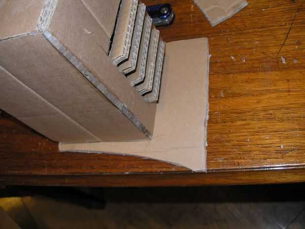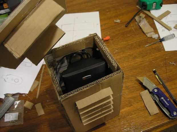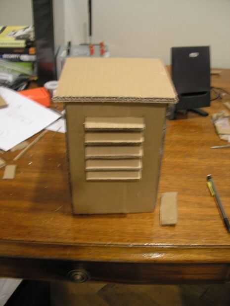 Puesto que la caja no era bastante cuadrada, puso hacia fuera un pedazo de cartón para la parte superior y remontarlo.