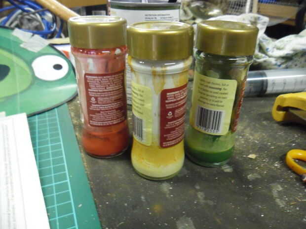 Esta es la divertida parte. Dependiendo de los colores de pintura que tienes disponible deberá mezclar pinturas para obtener los colores que usted requiere. Al mezclar pinturas almacenar en frascos pequeños, esto garantiza que mantener el mismo color durante todo el proyecto. También cuando mezcla pinturas Asegúrese de hacer un lote lo suficientemente grande para dar a tu proyecto un par de capas. Yo generalmente comienzan con las secciones blancas, seguidas por colores y luego pintar en las áreas negras ultima. Negro es bueno para cubrir encima de los bordes chungo que tenga (-: se requiere secado entre colores, eso es bueno, usted tendrá tiempo para construir el resto de la caja del pájaro!
