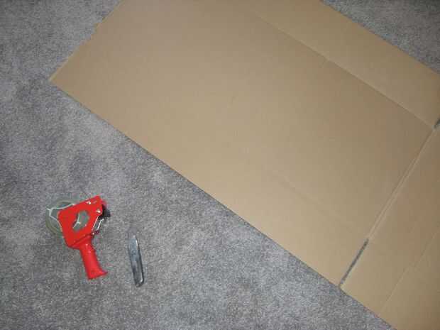 Todo lo que necesitas es de segunda mano de cartón, un cúter (cuchilla) y cinta de embalaje (en un dispensador funciona mejor).