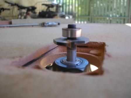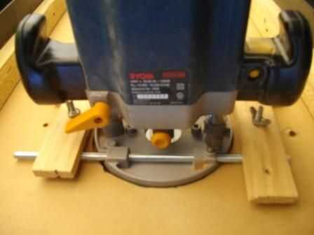 La acción que estoy usando es 12mm de espesor, que es bueno, porque era de la primera ranura corte broca en que pude poner mis manos una de 4mm. Así, al borde de unir estas tablas en los paneles más grandes, primero configurar el router en una mesa de fresadora. La mía es una casera, sólo una gran hoja de MDF con mi router atado a la parte inferior como en la foto.