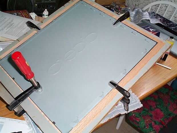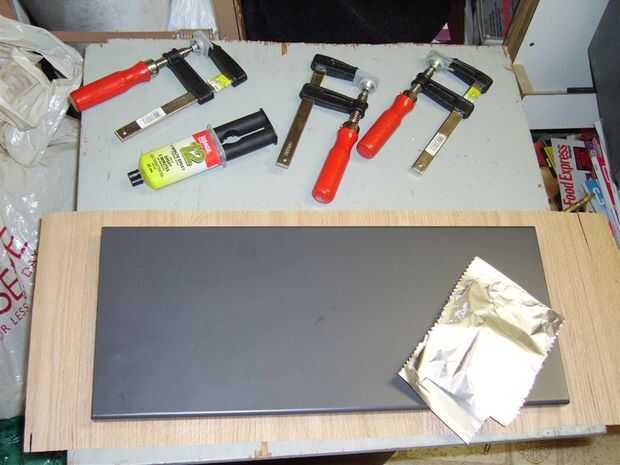 -Sujete el panel de la chapa; Utilice un trozo de madera debajo de la chapa para que no dañe, si puede, sujetar un pedazo de madera en el panel así para asegurarse de que la presión se distribuye uniformemente