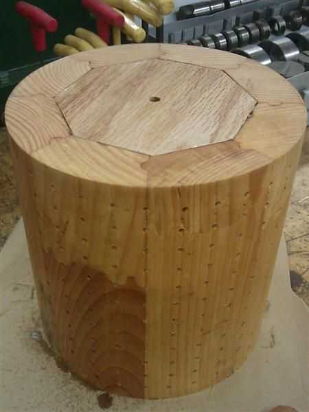 Después de que el poliuretano es seco, apriete la correa de 8" en el borde del tambor. Corté la cinta a la mitad porque era demasiado ancho y cubierto la primera hilera de orificios. Si no mantenga en su lugar por la fricción solamente, puede utilizar clavos para virar en el lugar.