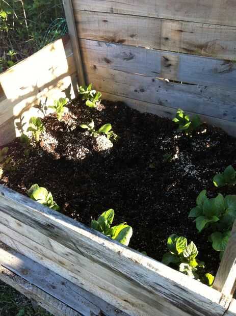Rellenar con una capa de estiércol, compost suelo, suciedad y unas patatas de semilla. 12 - 16 semilla de papa debe dar un buen rendimiento.