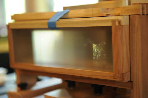El único elemento de este proyecto que no está hecho a mano es la lente de gran formato con un obturador integrado y la apertura. En este caso construí la cámara ideal para un 90mm o un objetivo más largo que cubre una estructura 6x17cm. Sin embargo, esta cámara se puede hacer en casi cualquier ancho. Algunas 120 cámaras ir hasta o incluso más de 24cm. La anchura máxima realmente depende de la cobertura de las lentes que desea utilizar. Sí, así es, que usted puede cambiar el lente en este chico malo también. Para saber que la cobertura de una lente tiene o está pensando en comprar, hay dos métodos bastante fáciles. Uno debe buscar la información en línea. Óptica Schneider tiene la información sobre todas las lentes vintage en su página web, por ejemplo. Si usted ya tiene una lente de montaje en gran formato, simplemente puede cinta una regla en la pared junto a una ventana en una habitación oscurecida. Mover la lente hacia adentro y hacia afuera de la pared para enfocar la imagen proyectada y anote la medida de lo que ha llamado el "círculo de la imagen". Se trata de la anchura máxima de la diagonal de su marco de película. Es una buena idea para hacer el marco máximo caben bien dentro de este círculo de imagen ya que tienes una cámara con movimientos de la lente.