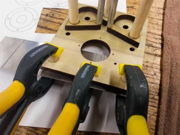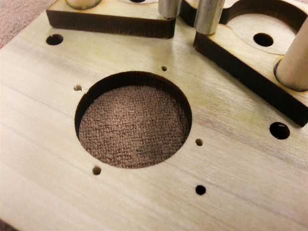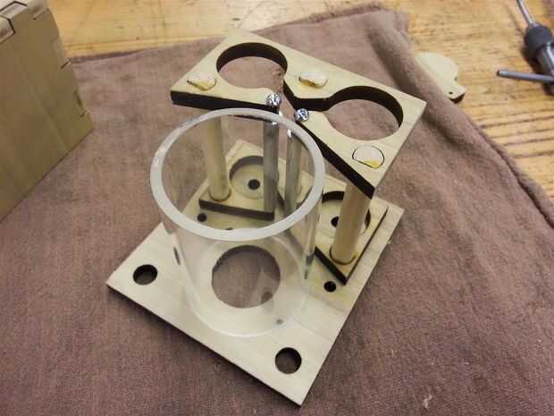 Corte dos segmentos de largo espiga 3/4" y pegarlos en los agujeros en la tapa como se muestra en el cuadro 2. Sirven como guías para alinear los orificios cuando la cámara está montada.