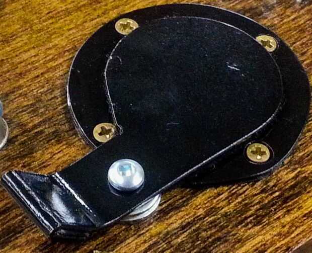 Utilice los cuatro #4 plana de tornillos de cabeza (latón que en mi caso) para sujetar la placa de montaje del agujero de alfiler. Utilice arandelas dos #4 Levante la persiana encima de la placa y el fieltro algunos espacio para respirar. Sujételo con un #4 redondo tornillo, apretar para que se sostiene hacia abajo firmemente bastante que no se mueve sin ser empujado.