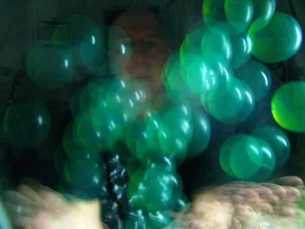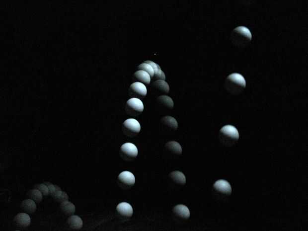 La primera foto es una pelota de ping-pong rebotando iluminada sólo con una linterna led con una segunda exposición dos.