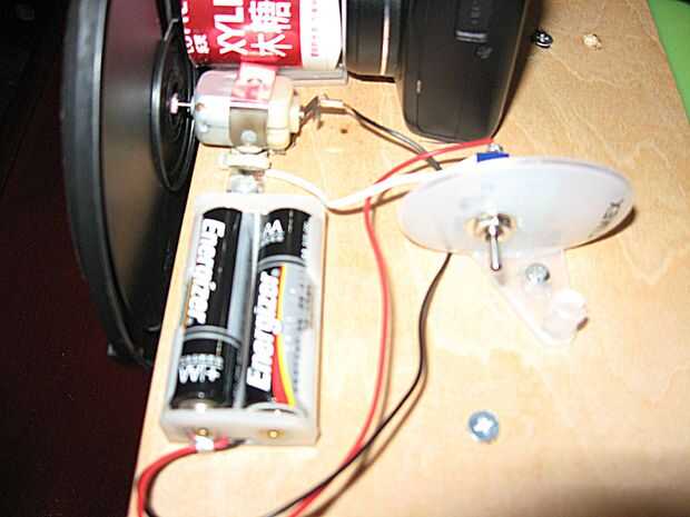 Las siguientes fotos muestran mi build. Básicamente una batería conectada a un interruptor conectado a un motor de juguete.