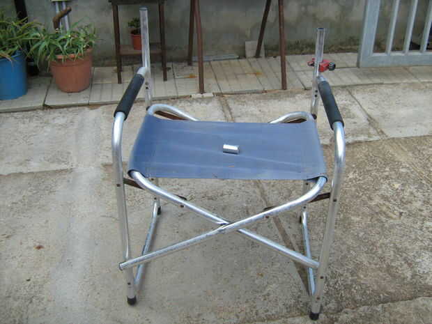 Es muy fácil de construir, utilicé un viejo director de tipo silla rota, dos bandejas viejo y cuatro ruedas giratorias.