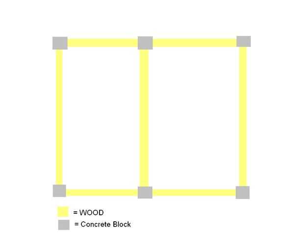Ahora para asegurar que el bloque de hormigón, sueltan barras de metal alrededor de la mitad de un pie largo en los orificios en los bloques de hormigón y luego en la estructura de madera en las seis partes donde los bloques son en la foto, haga agujeros emparejar la anchura de las barras de metal y deje caer la estructura de madera sobre las varillas de metal con los agujeros y las barras de metal encima de la otra.