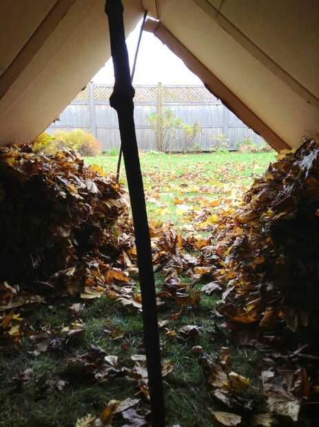 Este diseño requiere de dos o tres árboles (o ramas) en proximidad cercana. Se realizó a lo largo de varios fines de semana con madera nueva, tratada a presión para la estructura de soporte y el piso y una valla fue reciclada para los lados. El techo