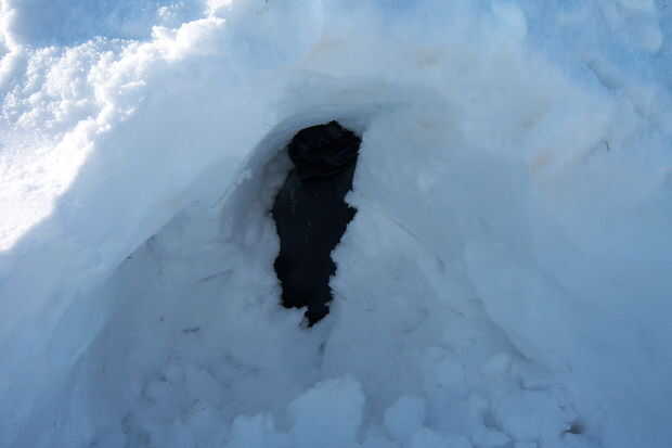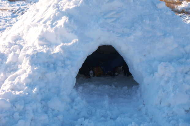 Nota en tamaño y seguridad: este no es nuestro quinzhee más grande jamás construido usando este método. Unos años atrás hicimos un quinzhee de 6 pies de altura en forma de una tortuga, con cuatro patas, una cola y una cabeza para la entrada. Fue increíble y tan grande que casi podía levantarse podrían caber a 4 adultos establecen. Lamentablemente se colapsó con todos dentro porque llegamos un poco entusiasta con la creación de ventanas y bolsillos laterales en las paredes, arruinando la integridad estructural de la cúpula. Esto me lleva al tema de seguridad. Nunca construir un quinzhee solos y nunca uno tan grande que el peso de la nieve por encima de usted puede aplastar o inmobilizarlo si se desplomó. Nieve puede ser muy pesada, especialmente cuando está mojado, y fácilmente podría asfixiarse si llegó a ser enterrado. La página de Wikipedia en Quinzhees recomienda siempre cavando hacia fuera mientras que en las rodillas, para que si se derrumba nunca tendrá una bolsa de aire debajo de su pecho y los pulmones. Lo sentimos agregar una nota seria a la generalmente divertido tema de nieve fuertes, pero la seguridad es clave después de todo :)