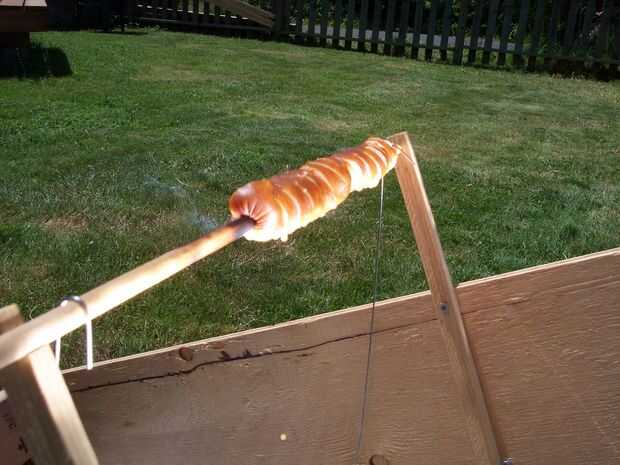 Lo hice con un par piezas 1/2" madera contrachapada de corte a cerca de 12" x 3/4", pero puede usar cualquier material que tienes disponible. Atornillar estas piezas hacia el centro de cada lado para que se peguen hacia fuera un poco más 6" para sostener el pincho. Si quieres que puedes hacer que gire por lo que puede doblar hacia fuera del camino cuando no esté en uso.