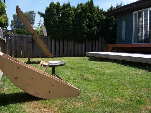 La forma más fácil de decir cuando se dirige correctamente es mirar las sombras de los montes de dos pincho. Cuando ves una sombra en el interior la superficie de cada lado, luego la olla está dirigida en la dirección correcta. Cuando ambas sombras pasan por el origen de la parábola entonces la olla está inclinado a la altura correcta. Deberás ajustar la olla de vez en cuando como los movimientos del sol (o más bien como la tierra gira).
