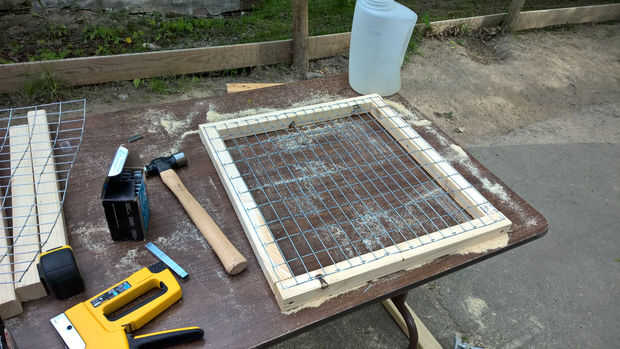 - Mida y corte el alambre soldado con autógena para adaptarse antes de grapado en su sitio.