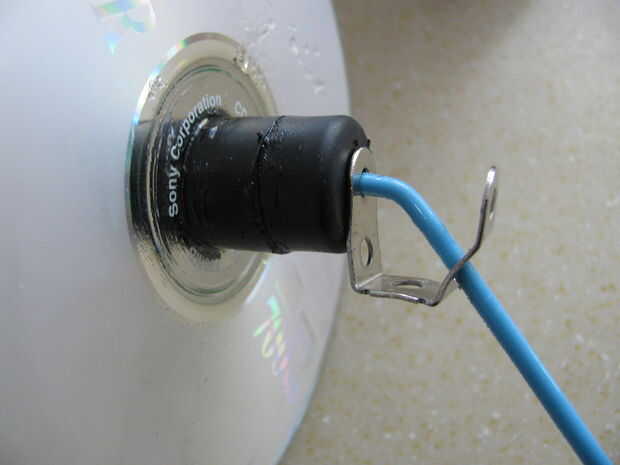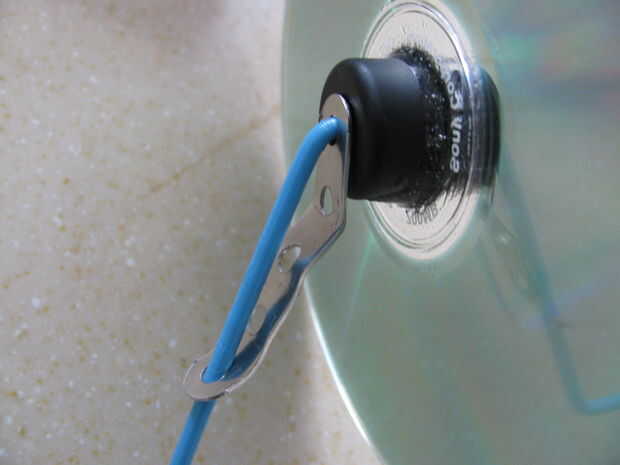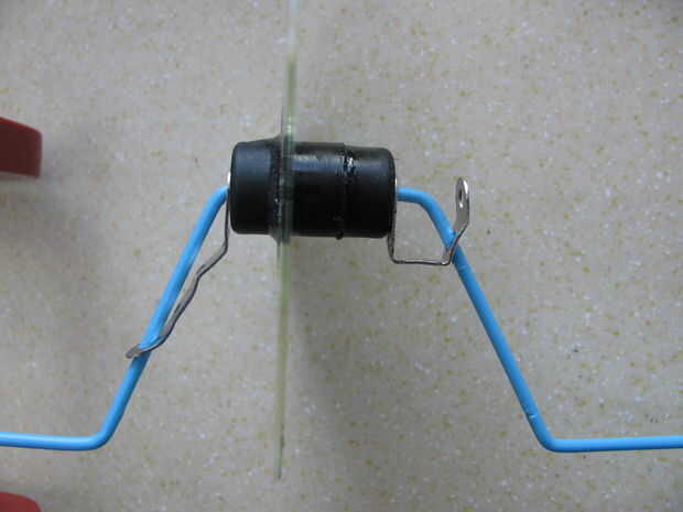 Empuje la izquierda que erector set retén de la tira de metal en el cable como se muestra.