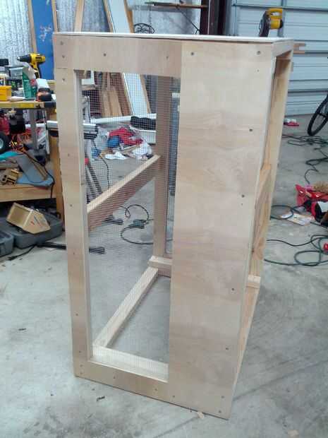Antes de añadir las piezas laterales, establecer el cuadro de su lado y coloque la tela metálica sobre el lado. Ponemos la tela metálica en dos lados y los otros dos lados a la izquierda como a la madera contrachapada. Engrape la tela metálica de un lado para sostenerla en su lugar y corte a la longitud. Acabado grapa alrededor de los lados. Para los lados con la tela del hardware, pero una cinta ancha para ir en la parte inferior. Esto reducirá el proyecto y mantener su ropa de cama de caer hacia fuera y hacer un lío. Enroscar en la parte superior de la tela metálica y acabado enmarcado alrededor de la tela metálica con la madera contrachapada.