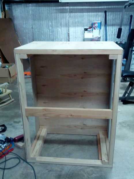 Primero montar el cuadro, cortando simplemente las tablas de 2 x 3" abajo para las dimensiones de su caja. Se puede ver que en las esquinas, también he añadido un apoyo extra para que había algo para enroscar el lados en todo.