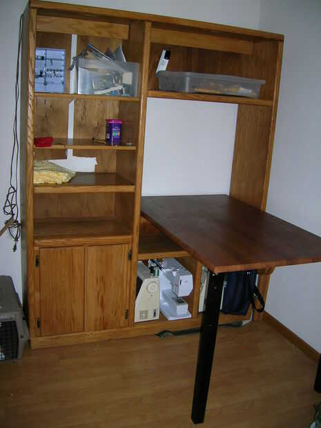 Deslice el tablero de la mesa en la inauguración de la tv, fasten.and ahí lo tienes.  Un centro de costura para todos los suministros y las golosinas.