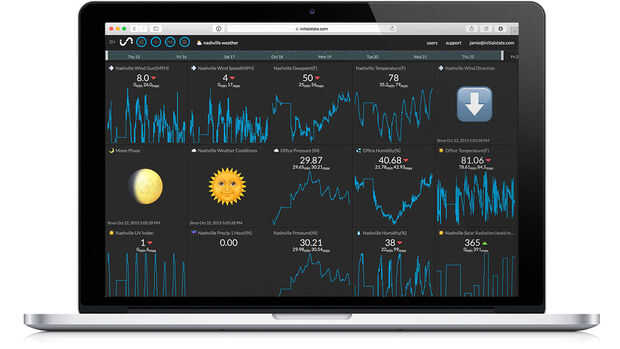 Después de un par de días, es interesante comparar los cambios de temperatura en la habitación frente a los cambios de temperatura exterior. Lo mismo con la humedad. Si desea añadir más sensores a la consola misma, simplemente enviar los datos a la misma BUCKET_KEY especificado en la configuración del usuario (junto con el mismo ACCESS_KEY). Estos sensores adicionales pueden ser en cualquier dispositivo y en cualquier y envían datos al mismo cubo. Por ejemplo, podría tener 10 sensores de temperatura conectados a 10 tipos diferentes de ordenadores monoplaca (Pi, Arduino, BeagleBone, Edison) y ellos tienen todos los datos de streaming en el salpicadero de un tiempo de auge.