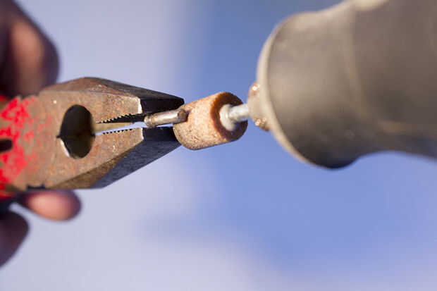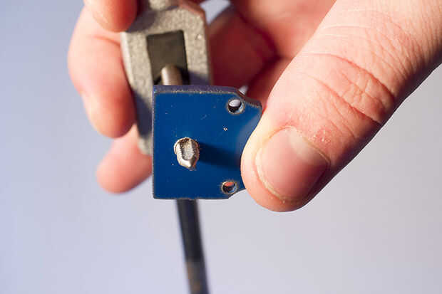 Dejando 3mm de rosca en un lado, la rutina o las roscas de los tornillos hasta que razonablemente suave utilizando una herramienta giratoria, amoladora o lija de la arena.