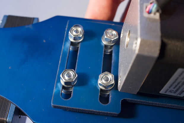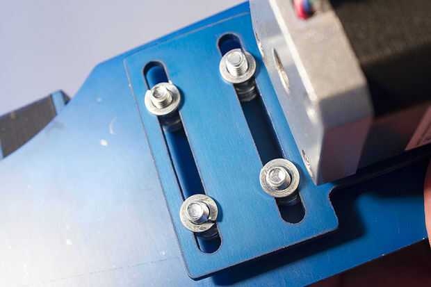 Fijar la tapa de motor paso a paso el montaje del motor paso a paso con los 4 M3 x 8 tornillos con arandelas.