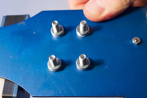 Coloque 4 arandelas M5 en cada tornillo.