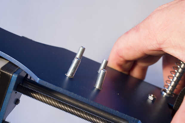 La vuelta la extrusora con los tornillos hacia arriba.
