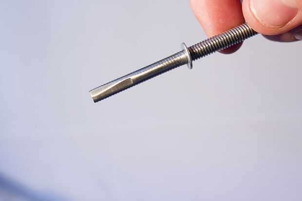 Coloque una arandela M5 en el extremo largo pelado en la varilla roscada.