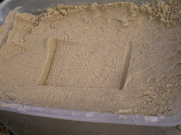 Es muy fácil realizar un molde de arena. Todo lo que necesitas es un poco de arena y una forma para imprimir un diseño en ella.