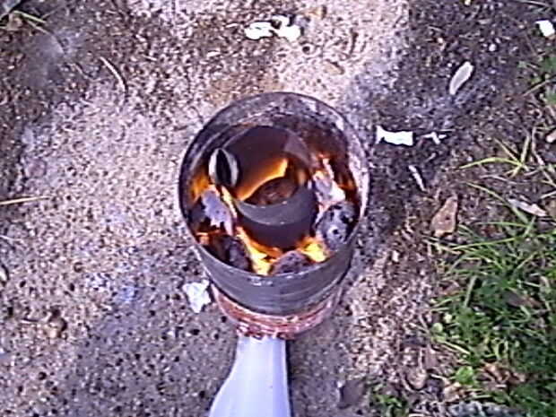Tan pronto como crees que se encienden todas las brasas debajo y alrededor del crisol, empezar al secador de pelo.