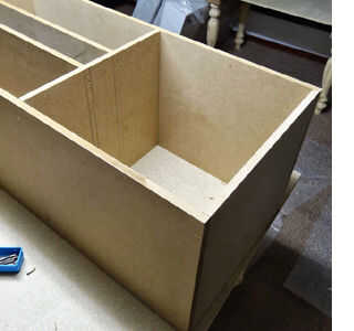 El paso en el proceso de montaje es para unir las piezas laterales. Use una abrazadera de la esquina para sostener en posición mientras que usted perfore un orificio piloto de 2mm a través de la parte superior e inferior en los lados. Avellane los orificios antes de atornillar con tornillos de 3 x 30 mm.