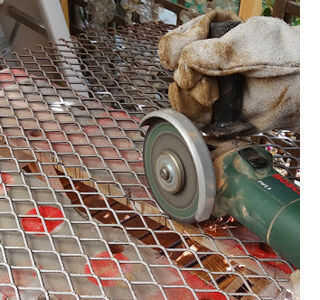 Comencé a cortar con mi amoladora de ángulo, pero tomó para siempre, así que... Usé mi multiherramienta Dremel y un disco de corte para rematar. Era más fácil y rápido para cortar la malla de acero a los tamaños requeridos para las puertas.