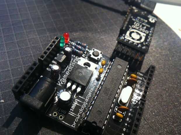 Si está utilizando un Arduino Uno, Mini u otra Arduino compatible con USB, necesitará simplemente enchufe en, seleccione la junta adecuada en las herramientas -> menú tabla y haga clic en el botón "Subir". Sólo debe tomar unos segundos. Si la tabla tiene encabezados programación de estilo de la serie, usted necesitará utilizar un adaptador serial FTDI en su lugar. Probablemente estás usando una placa basada en el Duemillanove. Si no estás seguro de qué seleccionar en herramientas -> tabla, el fabricante de la placa probablemente puede decirle.