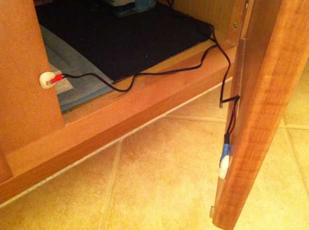 Utilizar algunas ligas para celebrar todos juntos - usted necesitará cambiar el bicarbonato de sodio después de un tiempo. Utilice alguna tachuela cartel para pegar el sensor y emisor en algún lugar donde el gato dispara (pero espero que no viaje en él) en su camino en.