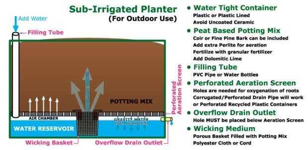 Este plantador combina dos conceptos para crear una huella relativamente pequeña pero jardín alto rendimiento. El primer concepto es el de sub-riego macetas (SIP). El diseño detrás de SIP utiliza las capacidades de absorción de diferentes materiales para tirar agua debajo de la superficie de la tierra a través de la acción capilar del agua. Encontré la información de diseño útil en lugar de pimienta Albo escrito por Al Gracián. Su sitio aún muestra algunas otras maneras de construir contenedores similares que pueden funcionar mejor dependiendo de los materiales lo tienen disponible.