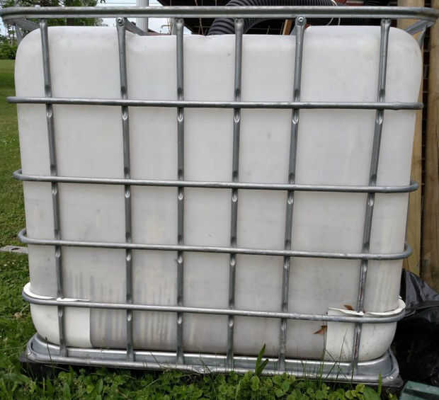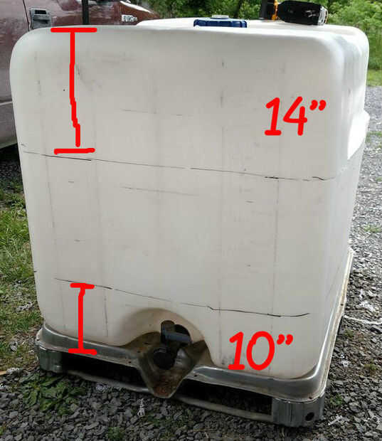 La distancia medida desde la base hacia arriba va a determinar su capacidad de embalse de agua. (La mayoría de estos contenedores tiene un medidor en el lado que indica el volumen en las alturas). Elegí 10" como mi altura de depósito que me va a dar aproximadamente 50 galones de capacidad. Un marcador permanente funciona bien para marcar la altura; He marcado unos puntos en las esquinas y utiliza un borde recto para rellenar las líneas.