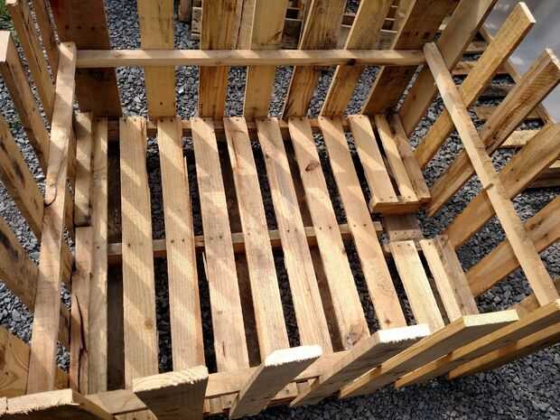 Usando las vigas laterales que despojó en el ultimo paso, corte cada uno de 40" de largo y colocar tiras en la parte superior de la plataforma base en cada extremo. Esto le dará un punto de fijación fuerte para las paredes laterales.